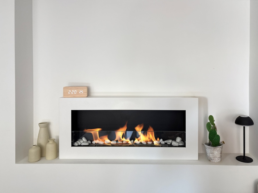 Wat onderscheidt dit model? • Snelle, eenvoudige montage • 6-puntsbrander met een doorlopende vlamlijn van 535 mm • Keramische wol + TUV-certificaat • Interne geharde glasplaat • Inbouw niet nodig • Hoge verwarmingscapaciteit, verhoogt de temperatuur 2–3°C in ruimtes tot ca. 25 m²