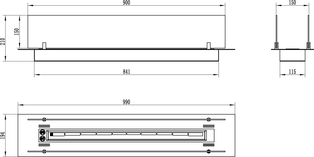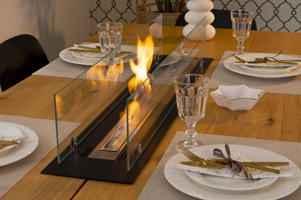 • Inbouw-bio-ethanolhaard 100cm zwart met glas